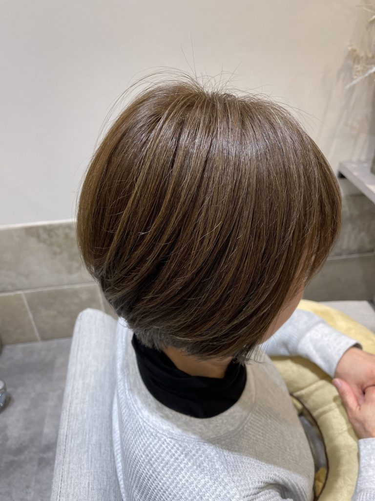 全体的に、極細ハイライトを入れていき、白髪をぼかすという、デザインカラーなんです!