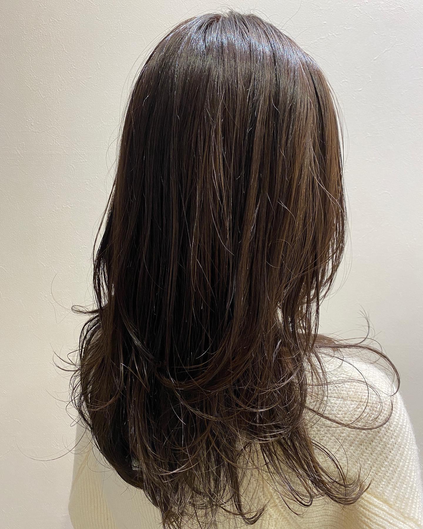 ブラウングレージュ🤎顔周りレイヤー 表面もレイヤー入れてナチュラルにふわんふわん🤍